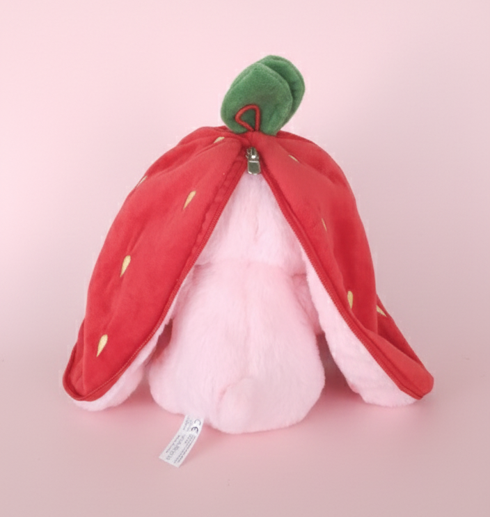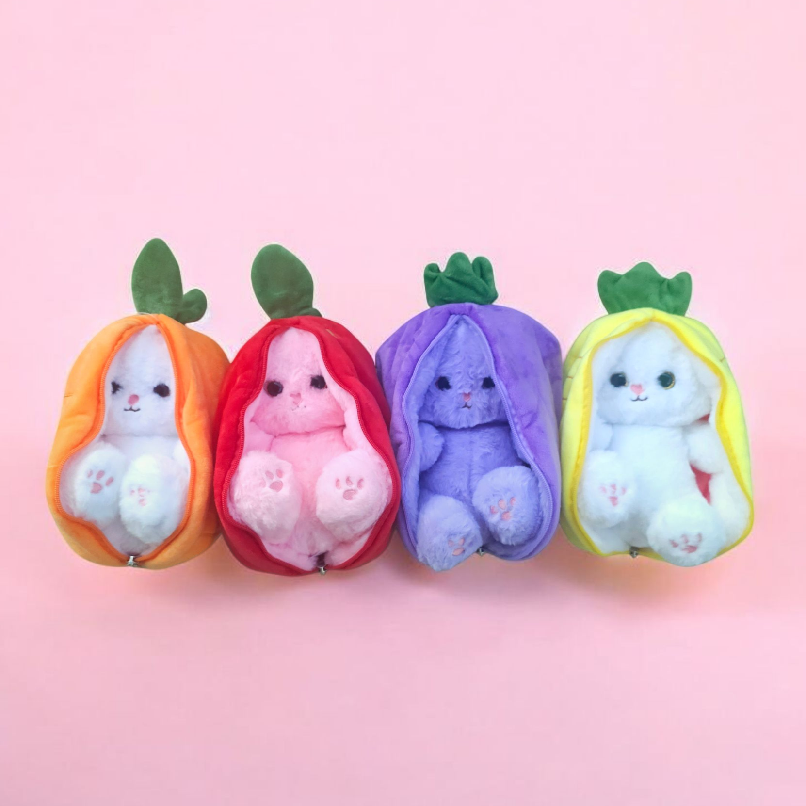 Découvrez nos lapins fruités : des peluches toutes douces cachées dans leur petit fruit 🍓🍊🍇🍍 !