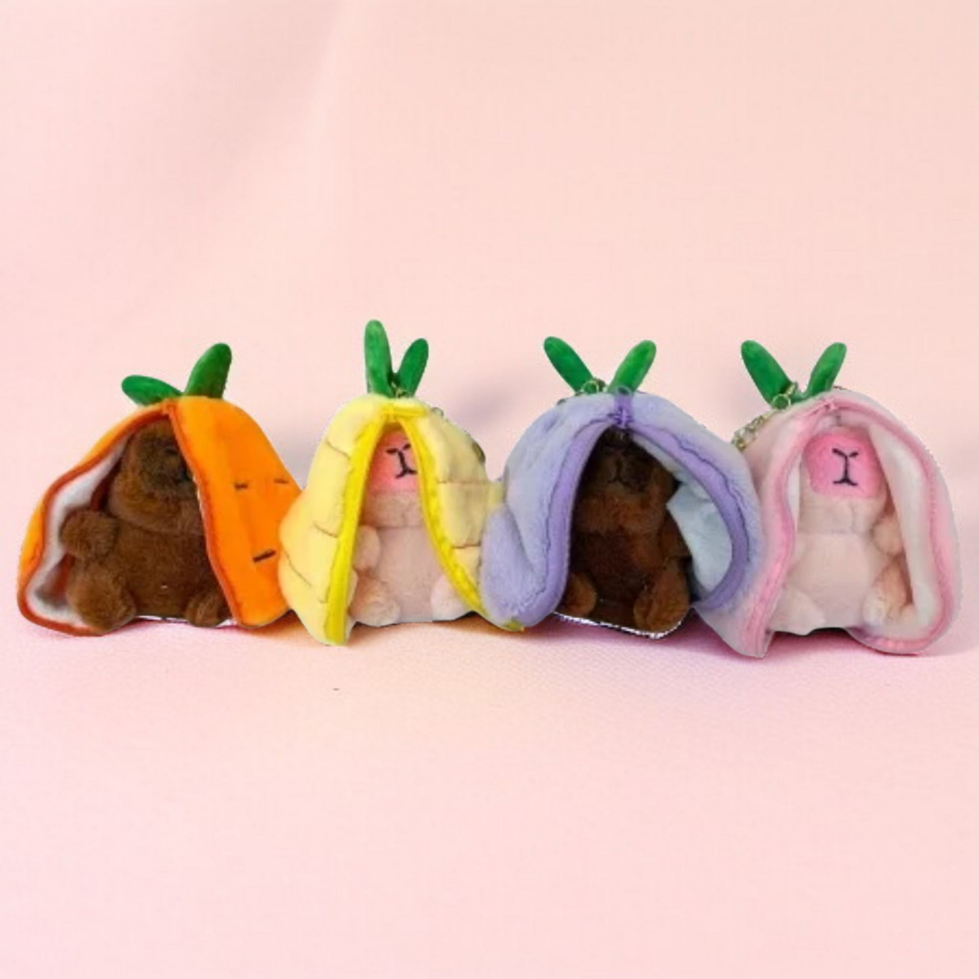 Emmenez votre dose de mignonnerie partout avec nos porte-clés capybara fruités 🍓🍊💜